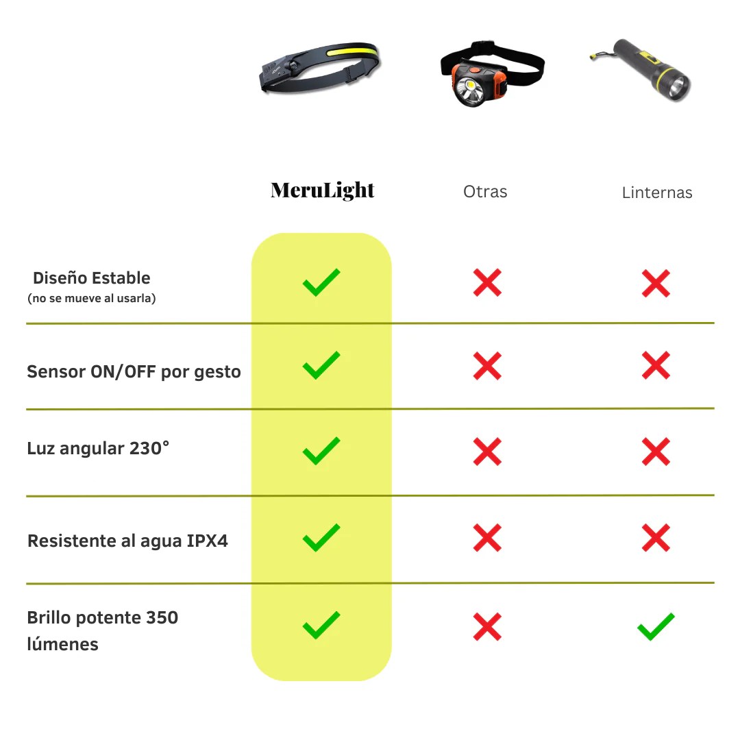 Mientras otras linternas se mueven, se caen o apenas iluminan, MeruLight ofrece una experiencia completa de luz sin esfuerzo.